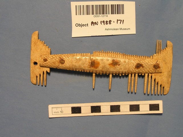 In the face of all the things I have lost I think about history. I think about how little we’d know about the past if people hadn’t dropped things, or forgotten them, or left them behind. I think of the comb found in Radley Barrows, a site outside Oxfordshire.